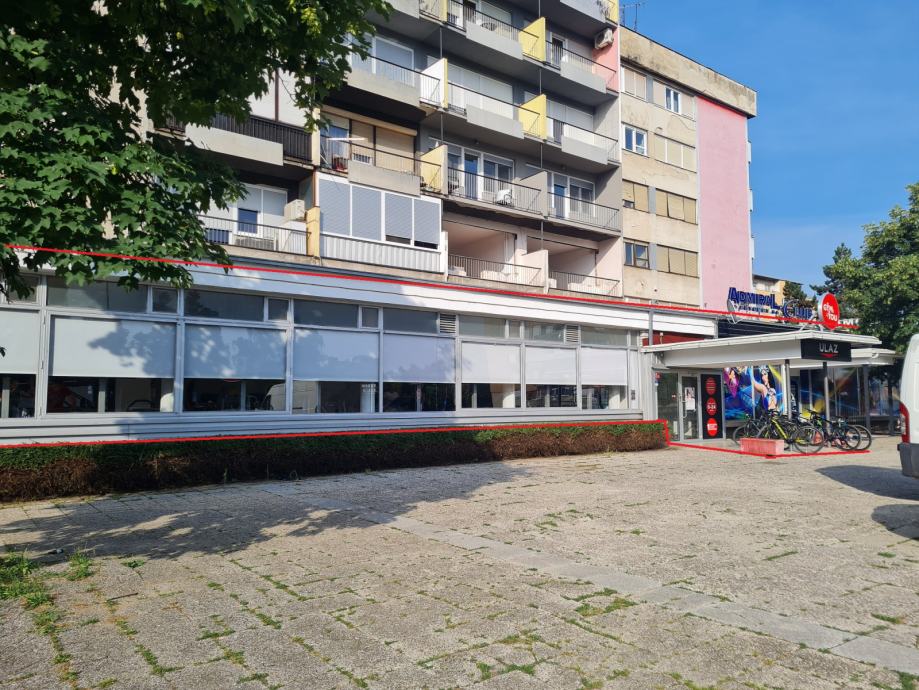 Prostor se sastoji od od prostorija u prizemlju i to ulaza u prodajni prostor u površini 10,50 m2, prodajnog prostora u površini 443,27m2, skladišta u površini od 58,66 m2, komora, stepenica i wc u površini od 74,14 m2, kancelarijskog prostora u površini od 34,50 m2 i garderobe na 1. katu u površini 32,05. Trenutni je zakupac poznati i uspješni lanac teretana “GYMS4YOU”, te je prostor u potpunosti renoviran.