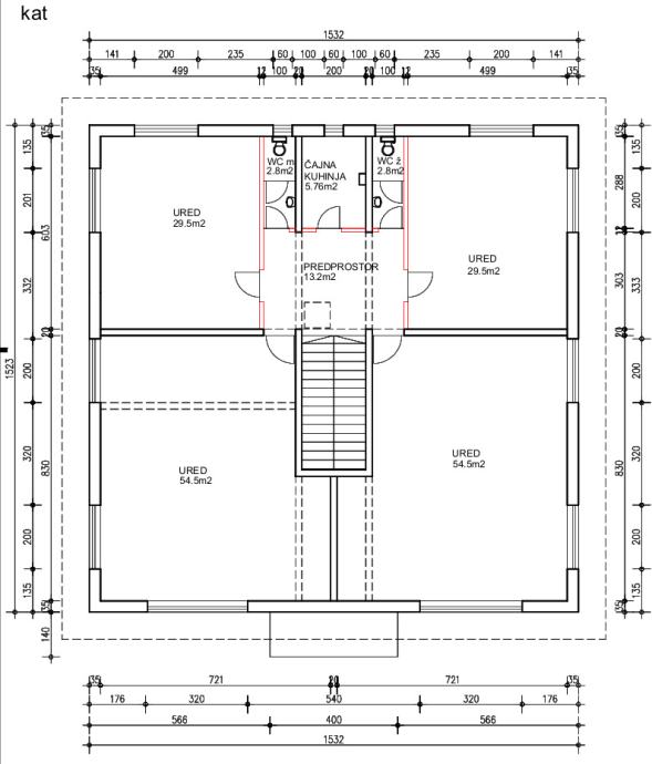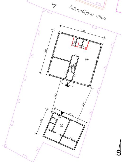 Površina 462 glavna zgrada + 106 pomoćna zgrada smještene na parceli površine 1216m2