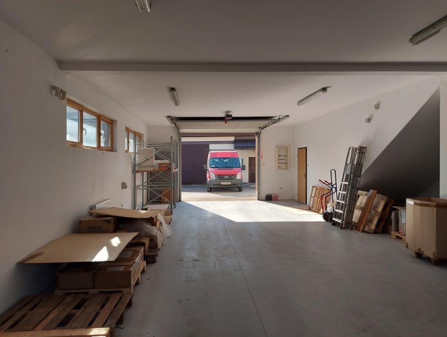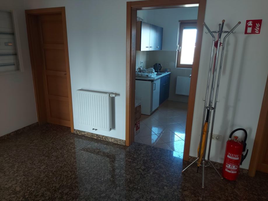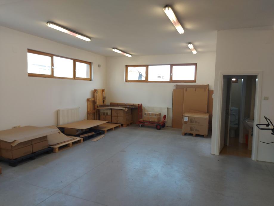 Pomoćna zgrada je prizemnica s drvenim dvostrešnim krovištem pokrivenim crijepom. Obnovljena je 2010. g. U prizemlju površine 106m2 se nalaze skladište i uredski prostor te čajna kuhinja, WC i kupaona s WCom. Pod u skladištu je beton s kvalitetnim protuprašnim premazom, u uredskom prostoru parket, a u sanitarijama keramičke pločice. Vanjska stolarija je PVC. Više detalja na upit.