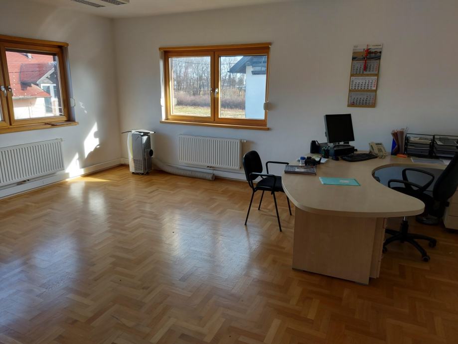 Prodaja poslovnog prostora 568 m2, Sveta Nedelja-Kerestinec. Poslovni prostor se nalazi u glavnoj i pomoćnoj zgradi smještenim na parceli ukupne površine 1216m2. Parcela je ograđena i najvećim dijelom kvalitetno asfaltirana, a ostatak je travnjak. Asfalt je izveden na vrlo tvrdoj podlozi koja omogućuje prihvat teških kamiona. Na parceli je smještena i nadstrešnica s ugrađenom solarnom elektranom snage 10kW. Ispod nadstrešnice su 4 parkirna mjesta. Parkinga ima i na ostatku parcele, a po potrebi i na cesti ispred ograde jer je ograda dovoljno uvučena.
