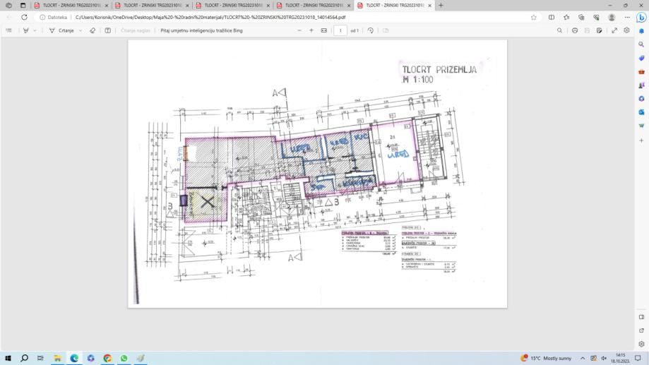 Površina poslovnog prostora je sveukupno 159,36 m2, a sastoji se od ulaza, prostranog predprostora (prodajni prostor, prostor za klijente ili neku drugu namjenu), dva manja uredska prostora, jednog većeg ureda, čajne kuhinje, arhivskog prostora, te većeg sanitarnog čvora.