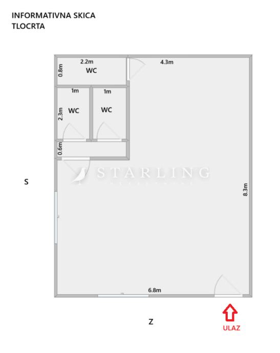Poslovni prostor se sastoji od jedne prostorije i tri WC- a.