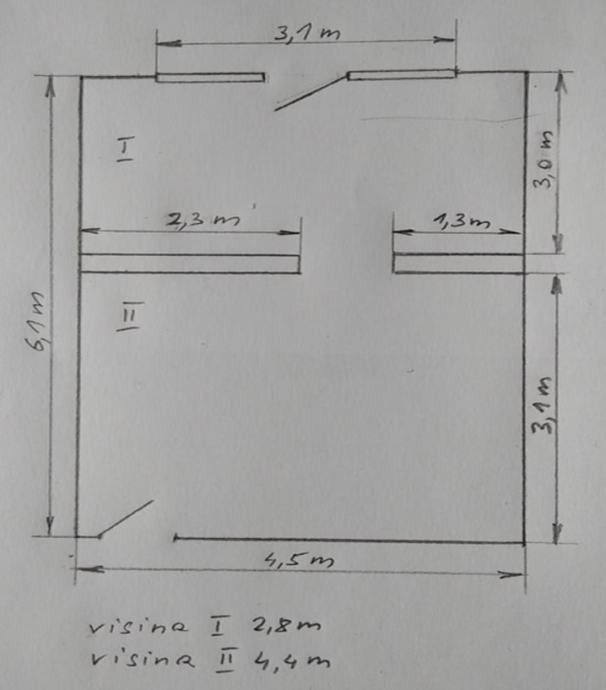 Prostor se sastoji od 2 prostorije (svaka 13,5 m2), sanitarnog čvora te podrumskog skladišnog prostora. Budući je prostor izuzetno visok (4,4 m), dio prostora je pregrađen u 2 etaže čime se dobio dodatni skladišni prostor.