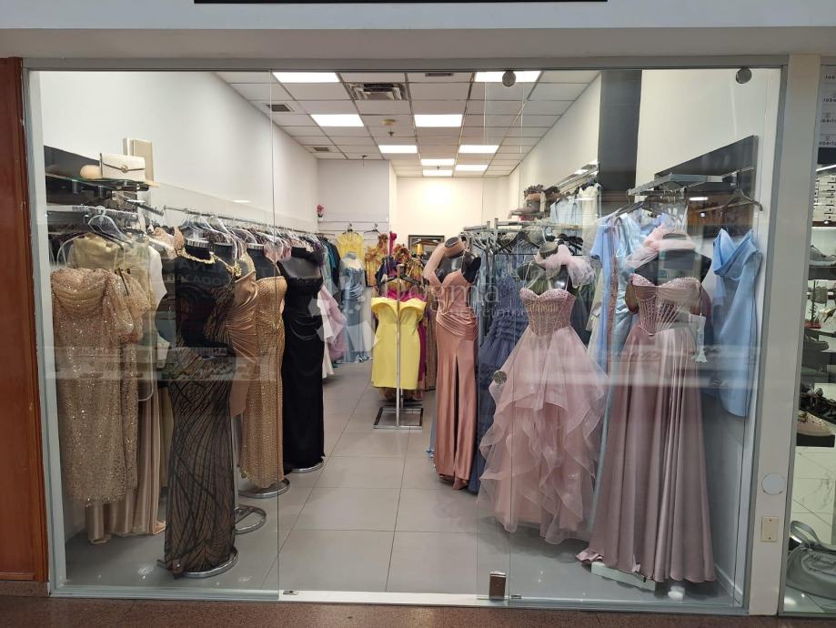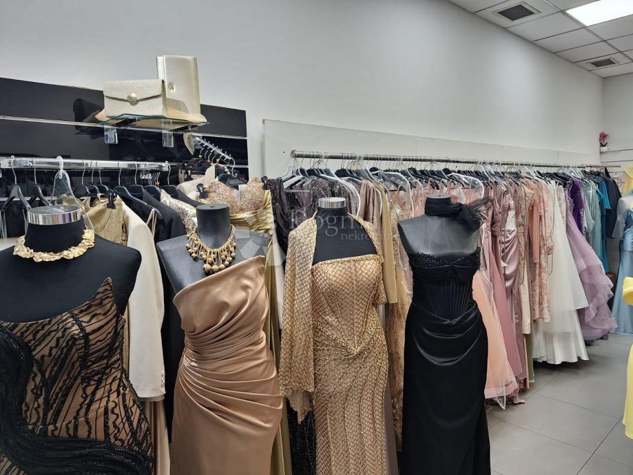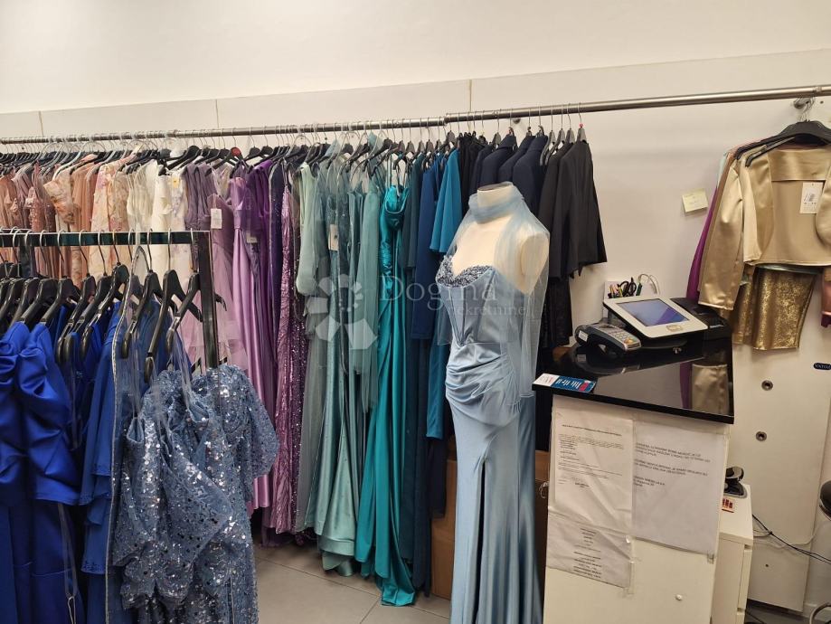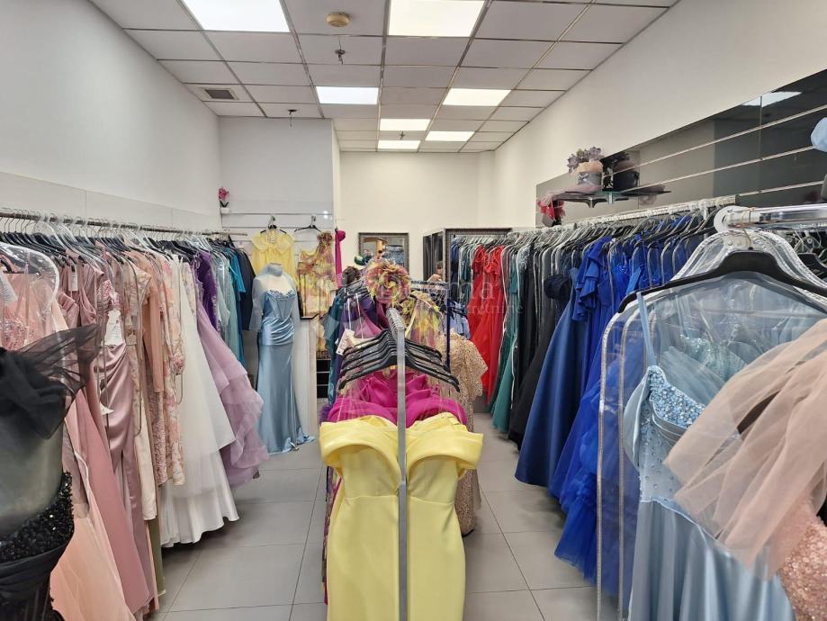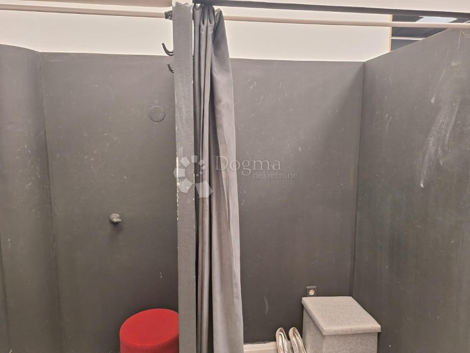 Postojeća funkcija prostora je butik, pa je zato opremljen i dvjema kabinama za presvlačenje.
