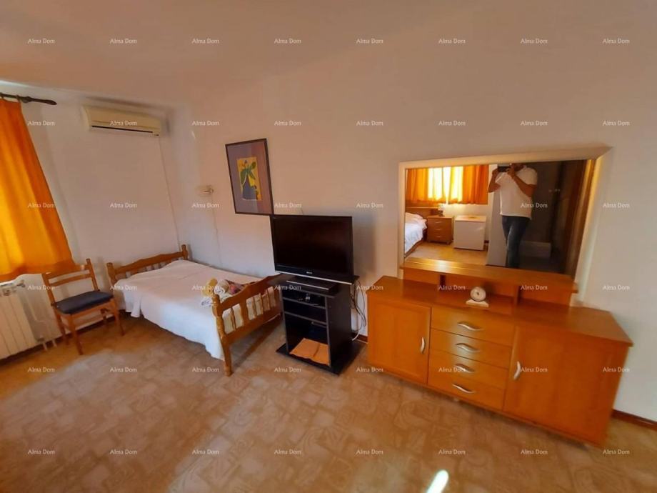 Na katu se nalaze pet spavaćih soba sa kupaonicama. Ima okućnice 1500m2 većim dijelom uređena je za parkiralište. Od Labina je udaljen 8 km, od Rapca 12km te 2 km od mora. Prilika za bavljenje ugostiteljstvom i turizmom na predivnoj lokaciji.