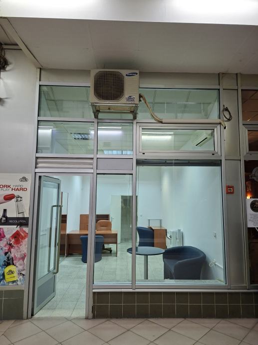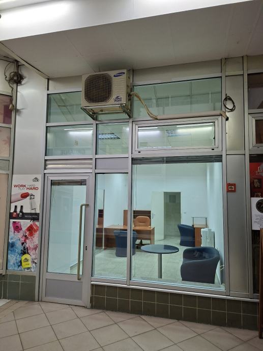 Iznajmljuje se poslovni prostor od 30 m² u prizemlju poslovne zgrade MV TREND na tržnici, smješten s unutarnje strane zgrade s velikim staklenim izlogom prema hodniku.