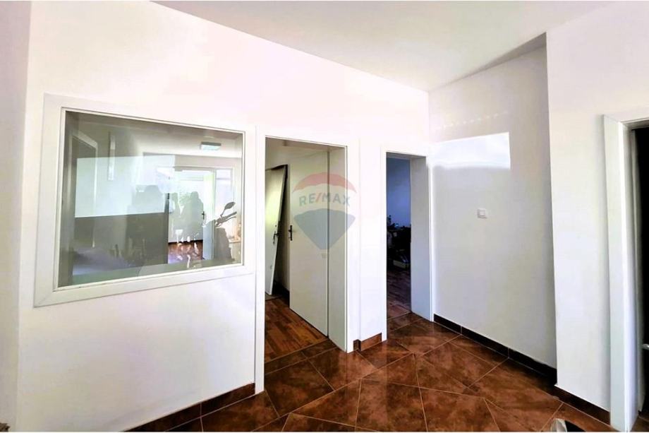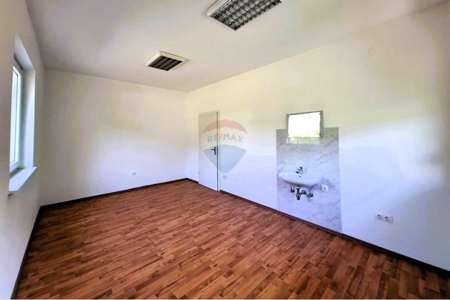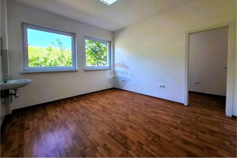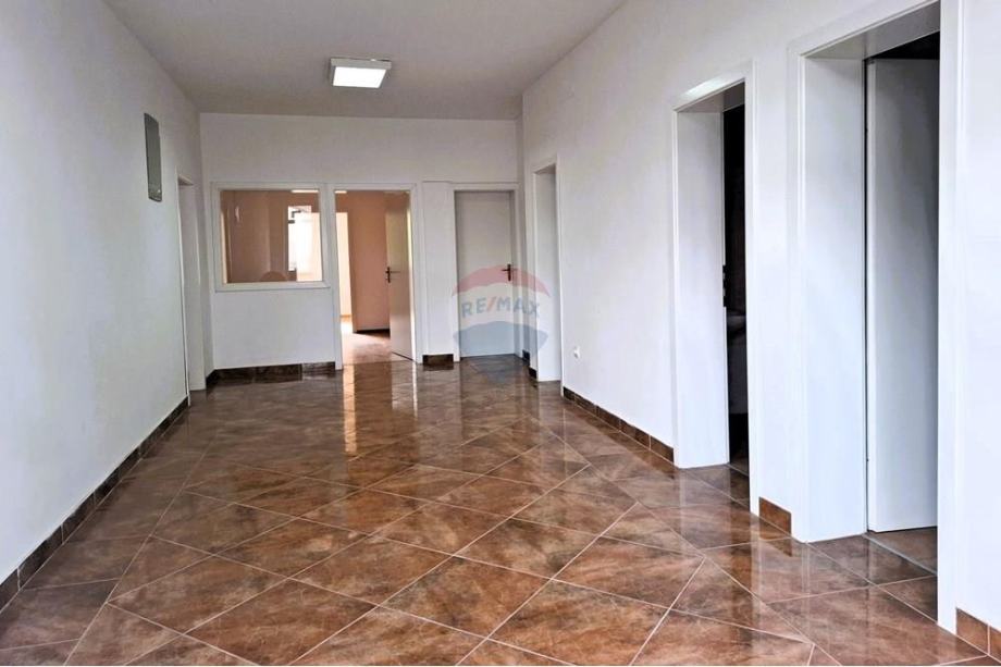 Iznajmljuje se lijepo uređeni prostor u prizemlju kuće, uređen za ordinaciju ili polikliniku, a pogodno je i za drugu srodnu djelatnost. Ukupna površina prostora iznosi 103,96 kvadratnih metara , i sastoji se od ulaznog hola površine 23,54 m2 koji se dijeli sa drugim poslovnim prostorom, te još 5 soba i 5 wc, čija je površina ukupno 80,42 kvadratna metra.
