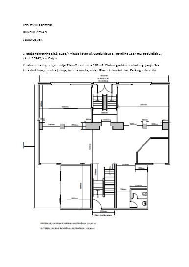 Prostor se sastoji od prizemlja 214 m2 i suterena 110 m2. Etažno gradsko centralno grijanje. Sva infrastruktura je unutra (struja, interna mreža, voda). Glavni i dvorišni ulaz. Parking u dvorištu