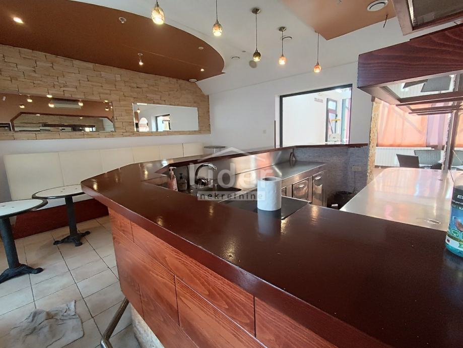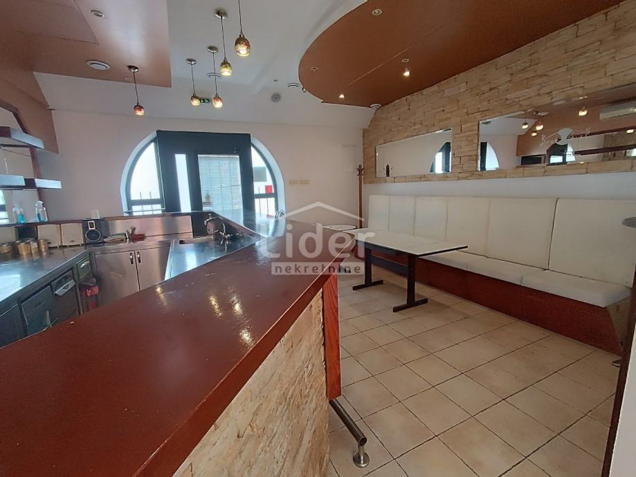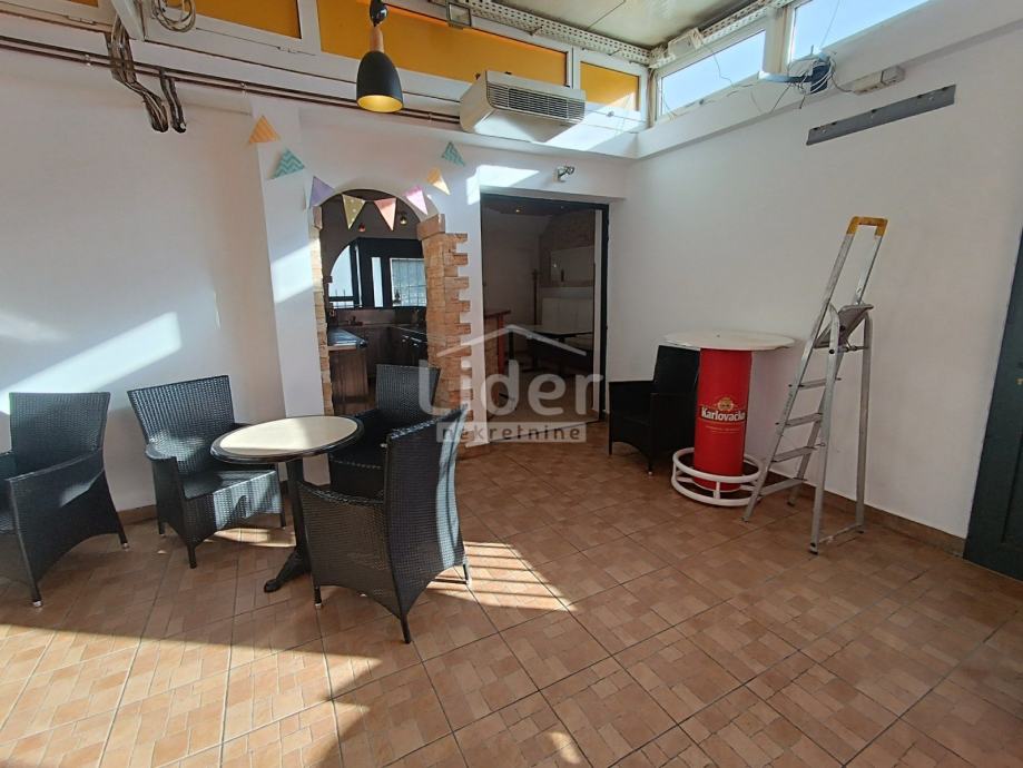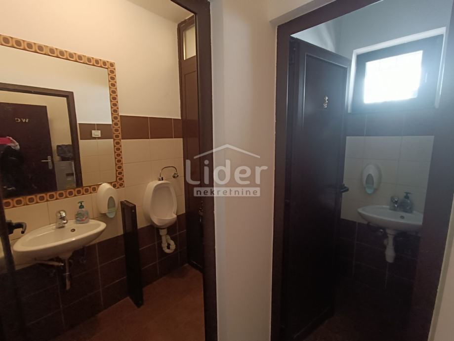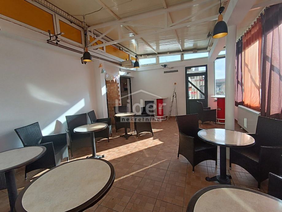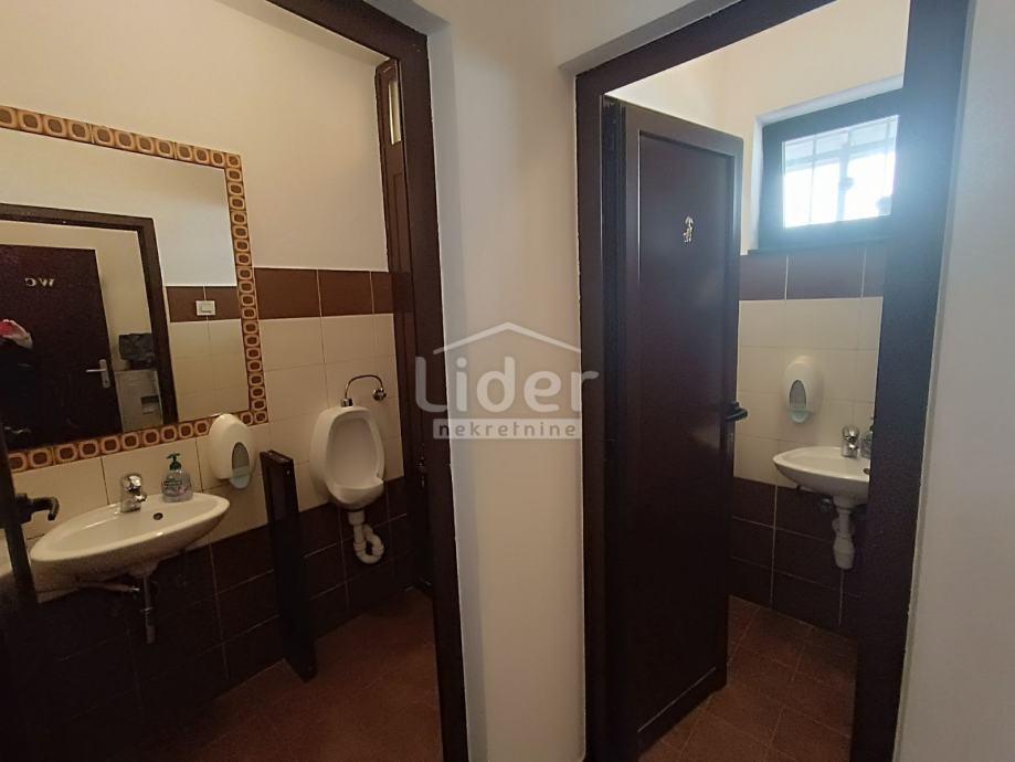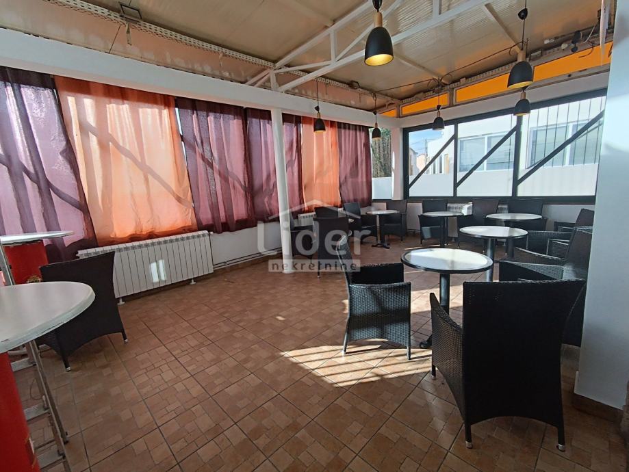 Prostor ima dva ulaza, sastoji se od dvije veće prostorije (25 m2, 34 m2), jedne manje prostorije (skladište), dva wc-a, prednje terase te ima parking.