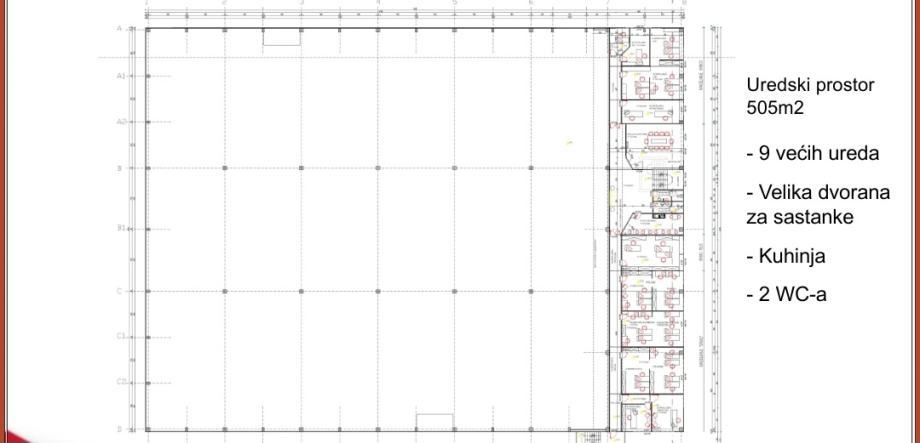 Cijena je 4.7 € po m2 za skladišni prostor, i 7 € za uredski prostor.