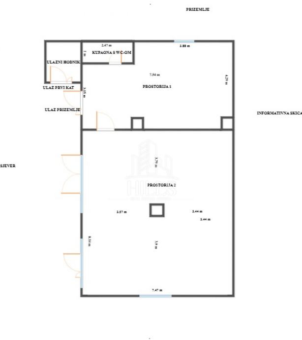 Na svakoj etaži se nalazi prostorija sa zasebnim ulazom i sanitarnim čvorom.