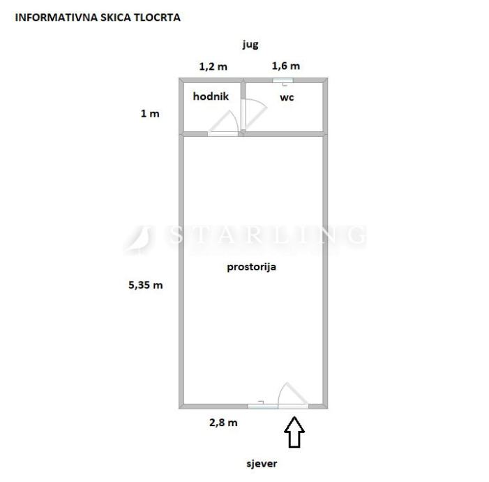 Prostor se sastoji od jedne prostorije površine 15 m2 te hodnika i wc-a površine 3 m2.