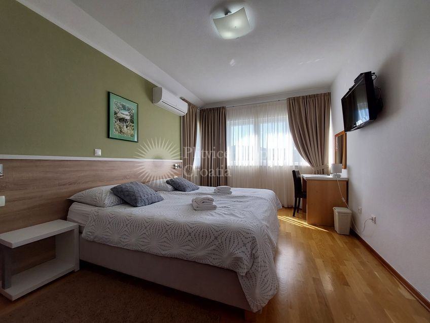 Nekretnina se sastoji od hotelske zgrade s 3 ulaza za goste s ukupno 12 soba za goste, te 4. ulazom koji omogućava pristup dvjema sobama, WC-u i praonici rublja. Zgrada ima parkirno mjesto i prostoriju s uljnim grijačem.