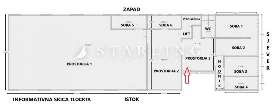 Prodaje se poslovni prostor površine 449 m2 na trećem katu poslovne zgrade s teretnim liftom.