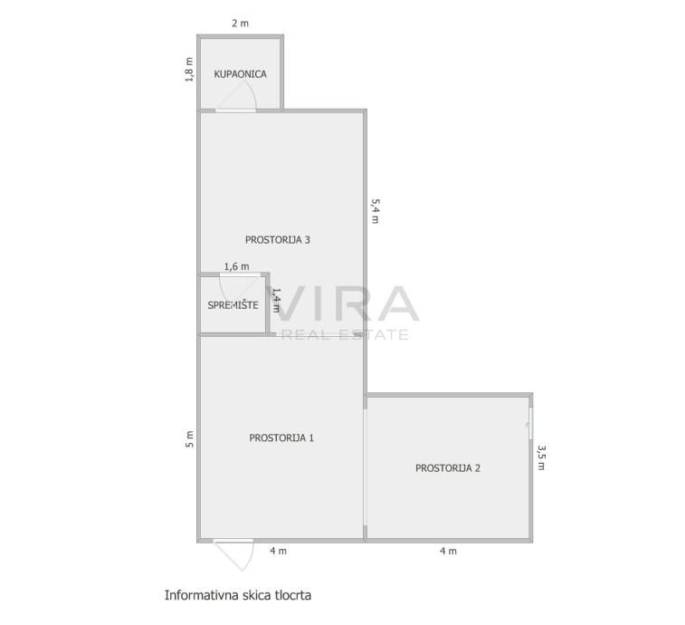 Prostor se sastoji od tri prostorije, kupaonice i spremišta.