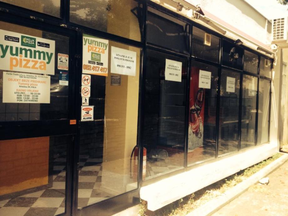 Prostor je trenutno opremljen s aparatima za pravljenje pizza dostave, može se iznajmiti kao takav ili prazan.