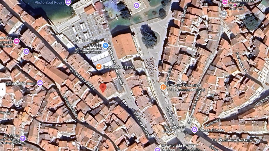 U samom srcu starogradske jezgre Rovinja, na početku ulice Vladimira Švalbe (br. 1), iznajmljuje se izuzetno atraktivan poslovni prostor površine 23 m², smješten na jednoj od najfrekventnijih pješačkih mikro-lokacija u gradu.
