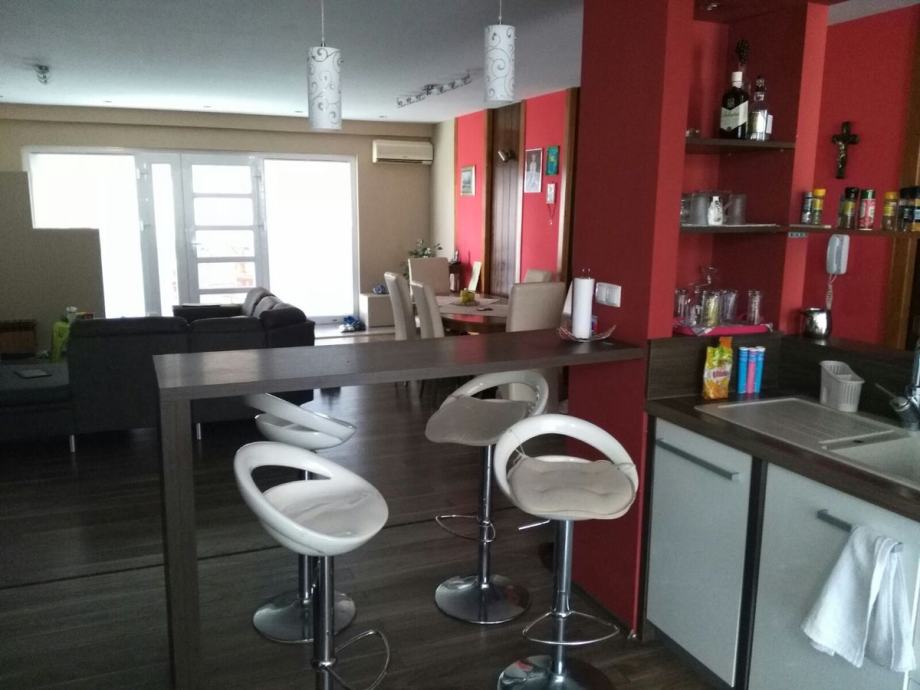 - stambenog dijela na katu koji se sastoji od predsoblja, hodnika, kuhinje sa blagovaonom i dnevnim boravkom iz kojeg se izlazi na veliku terasu, 5 spavaćih soba, kupaonice i WC-a.