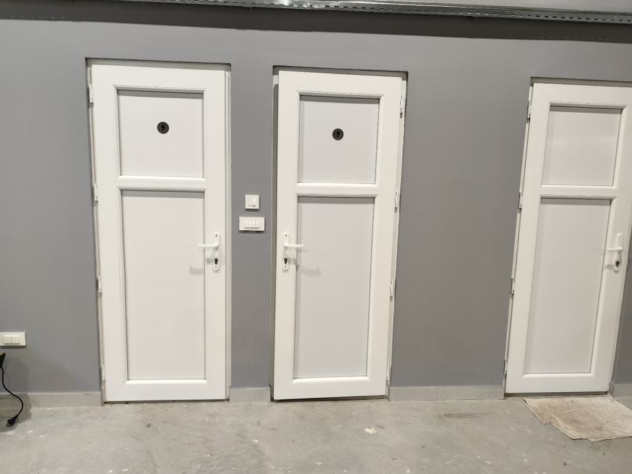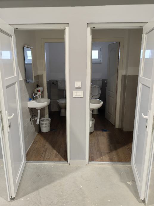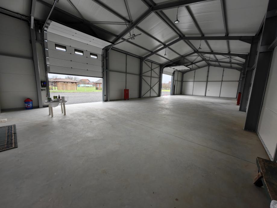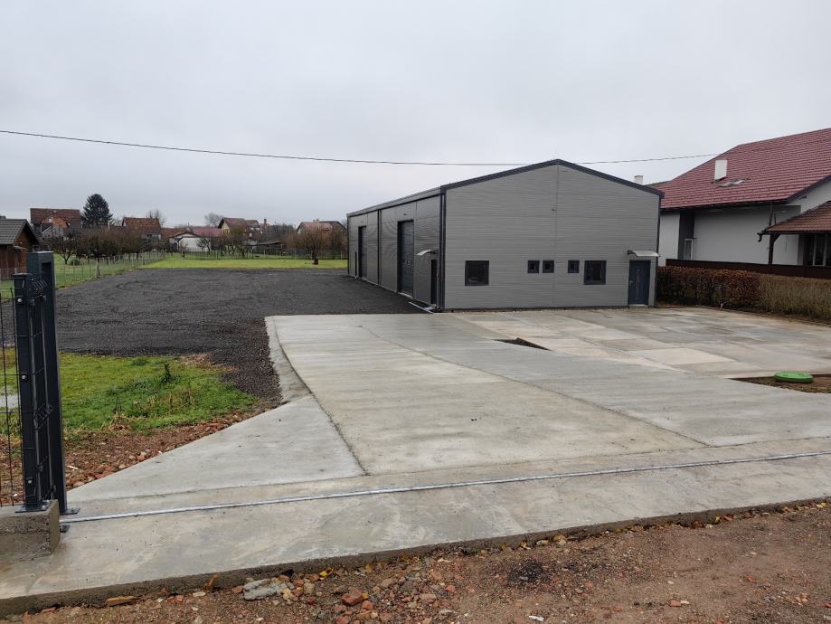 Također postoje dva ulaza sa industrijskim sekcijskim vratima dimenzija 4x4m. Podloga je betonska-industrijski pod.