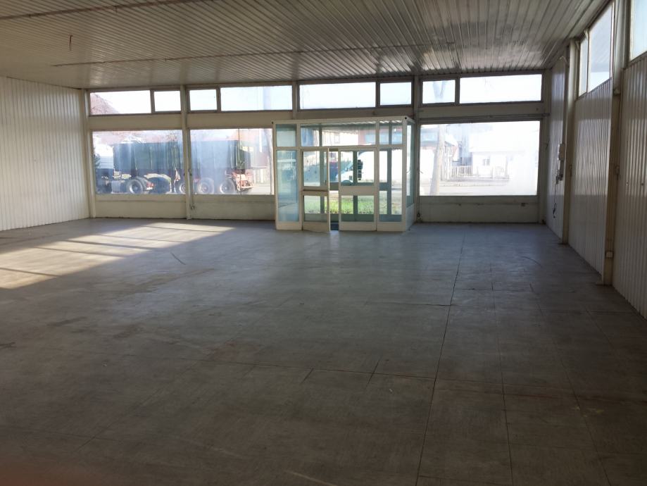 Trgovina 300 m2 , skladište 1000 m2 sa uličnim prodajnim prostorom od 300 m2 iznajmljujem.Može se i pregradit po želji ( 250 m2 ,300 m2 ) i iznajmit manju kvadraturu ,cijena po dogovoru. Tri skladišta po 300 m2.Prilaz kamionima ,vrata hale 4,20 visina , parking , kolska vaga , prilaz željeznicom, vlastiti kolosijek.