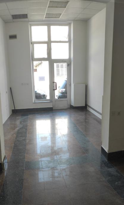 Iznajmljuje se kompletno adaptiran poslovni prostor od ulice, u centru grada, sa svim priključcima i uredne dokumentacije. A sastoji se od: radnog prostora sa 28,36m2, predprostora od 2,92 m2, pomoćne prostorije od 5,57 m2 i toaleta od 1,63 m2, sveukupne površine 38,48 m2. Može i kupnja!