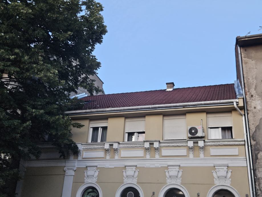 Dva stana na 1. katu koja se jednostavno mogu povezati u jednu cjelinu, ukupno 115 m2. Ispred stanova nalazi se vlastita terasa 20m2. Stanovi imaju pet prozora prema ulici. Centar Grada Matije Gupca 28. Mogućnost korištenja zajedničkog dvorišta i pecare. Mogućnost korištenja tavana za arhivu i sl.