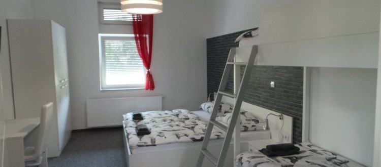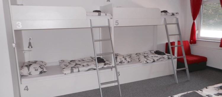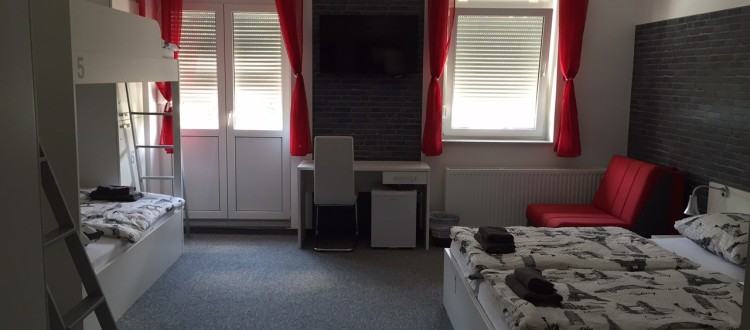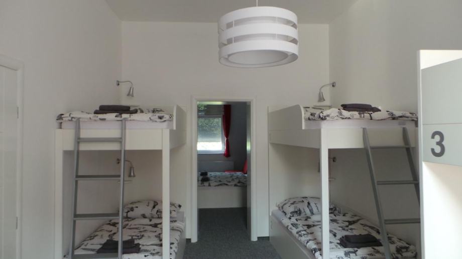 Na prvom katu se nalazi hostel s 5 apartmana, 40 ležajeva, kotlovnica, komunikacijska soba, sve potpuno novo uređeno i opremljeno.
