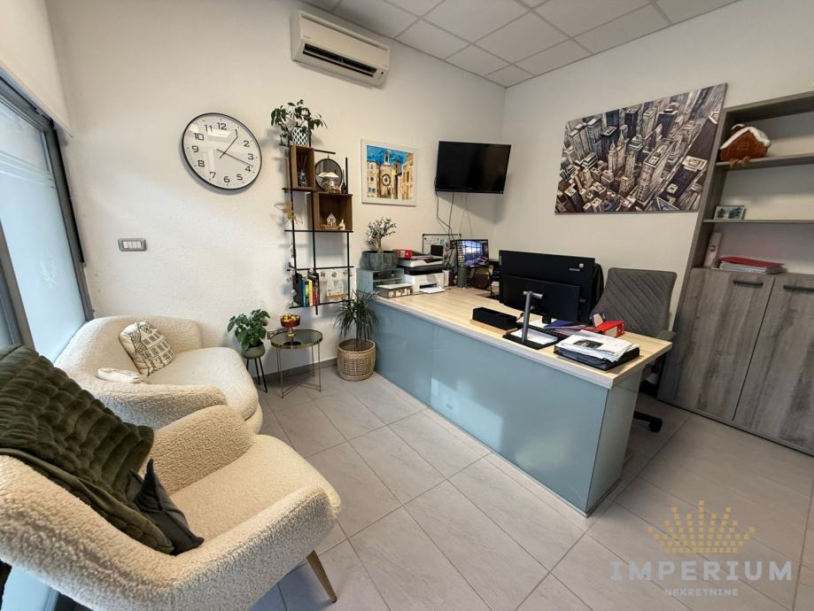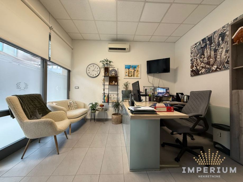 Prostor se nalazi u prizemlju, ima 21 m2, a sastoji se od dvije odvojene prostorije i sanitarnog čvora. Idealno za uredski tip posla, kozmetički i frizerski salon itd.