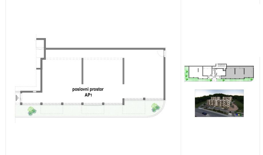 Dovršeni poslovni prostor 133,65 kvadrata u prizemlju A zgrade, sa 2 WCa i pripadajućim skladišnim prostorom 40,9 kvadrata, te 4 garažna parkirna mjesta.