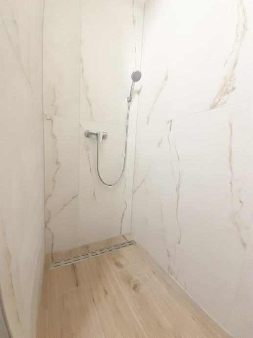 Prostor je otvorenog tlocrta, ima dva ulaza, dvije kupaonice s tušem.