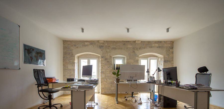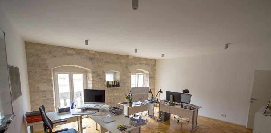 Iznajmljuje se uredski prostor položen na drugom katu plemićke palače u srcu starog dijela Splita. Ured se sastoji od jedne velike prostorije sa 5 radnih stolova, odvojenog manjeg ureda, wc-a, prostorije koja sluzi kao pomoćna kuhinja te balkona sa pogledom na trg. Ukupna površina je 50m2. Slobodno odmah.