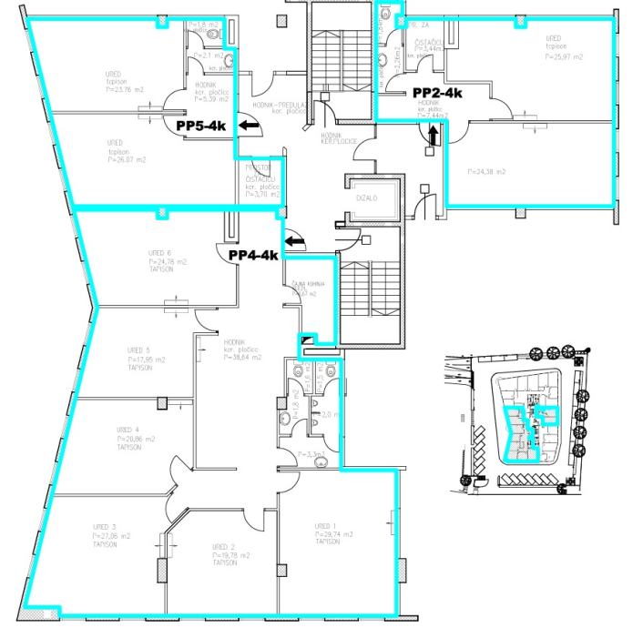 Prostor 2: ukupne površine 65,33 m2 - 2 ureda, čajna kuuhinja, toalet, ostava