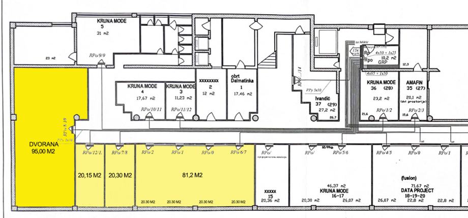 Iznajmljuje se funkcionalna dvorana površine 95 m2 u centru Splita.