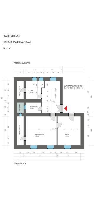Plafoni u stanu su 3m visine, a zidovi 40-60cm