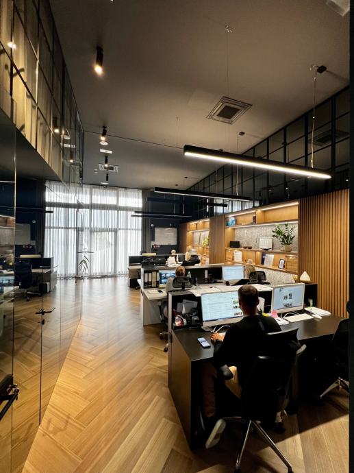 Površina od 114 m² organizirana je jasno i funkcionalno, s naglaskom na produktivnost i profesionalni dojam. Open space radni dio omogućuje ugodan rad za tim do deset zaposlenika, dok zasebna sala za sastanke osigurava privatnost i fokus za sastanke s klijentima i partnerima. Prostor uključuje i potpuno opremljenu kuhinju te server sobu s potrebnom infrastrukturom. Dodatna prostorija na galeriji pruža vrijednu fleksibilnost – može se koristiti kao dodatni ured, arhiva ili prostor za odmor.