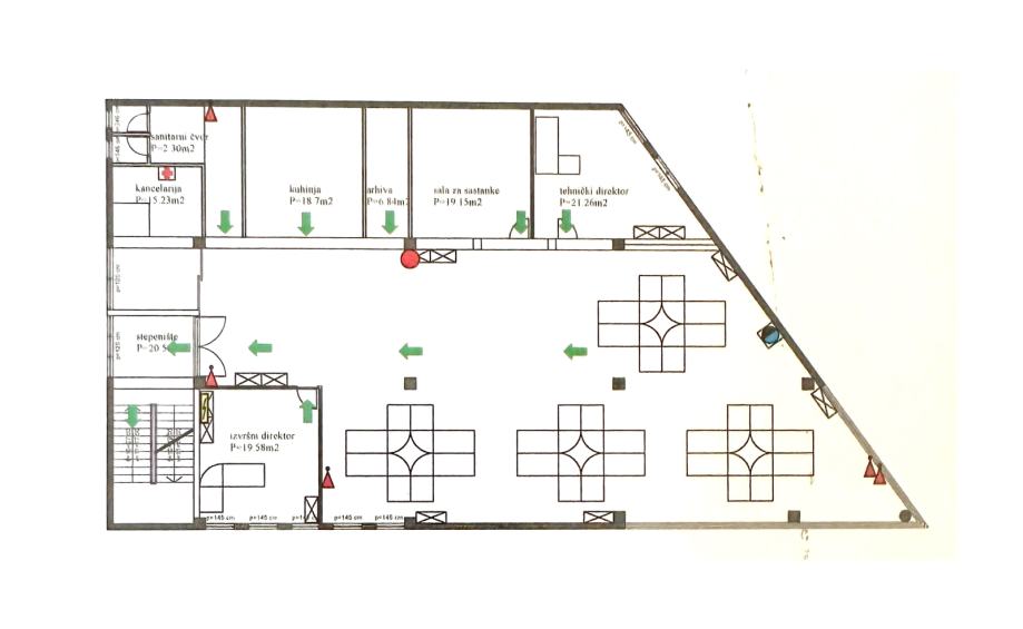 Iznajmljuje se uredski prostor od 307m2 na prvom katu poslovne zgrade u splitskom kvartu Dragovode. Kat je podijeljen na 6 prostorija, ali je moguće i dodatno pregraditi po potrebi.