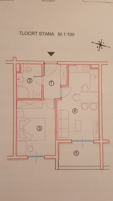 Sastoji se od malog hodnika, kupaonice, sobe, dnevnog boravka s kuhinjom te balkona (pogledati priloženi tlocrt).