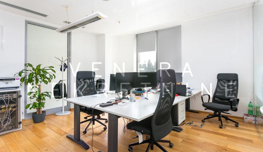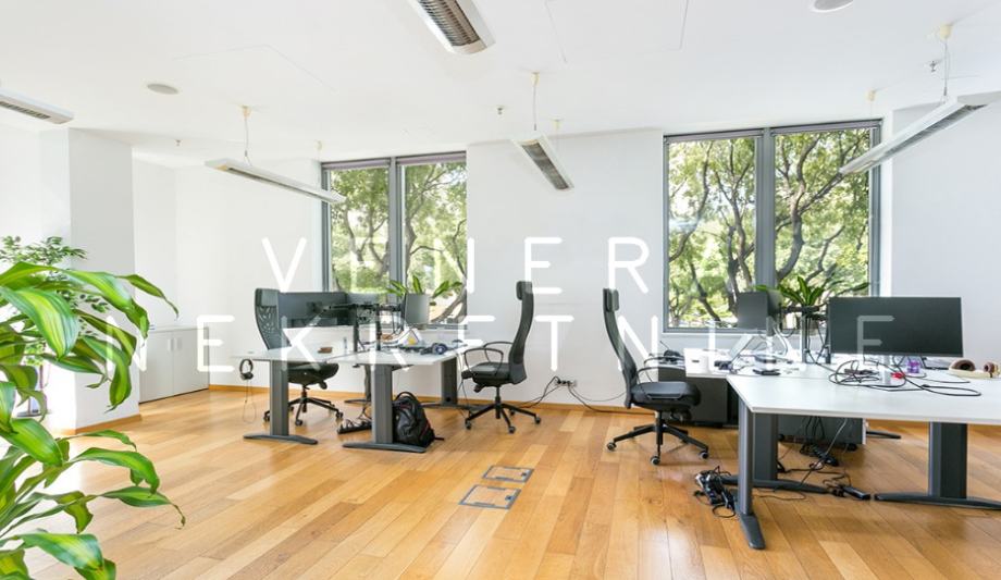 Ističemo da se radi o kutnom prostoru sjeverozapadne orjentacije, te kao takav ima najviše svjetla. Trenutno je staklenim stijenkama pregrađen na tri prostorije. Po želji budućeg korisnika staklene stijenke mogu ostati u prostoru ili se ukloniti pa da se dobije veliki open space. Uz slike zgrade i tlocrt, ovom mailu prilažemo i fotografije trenutnog stanja predmetnog ureda.