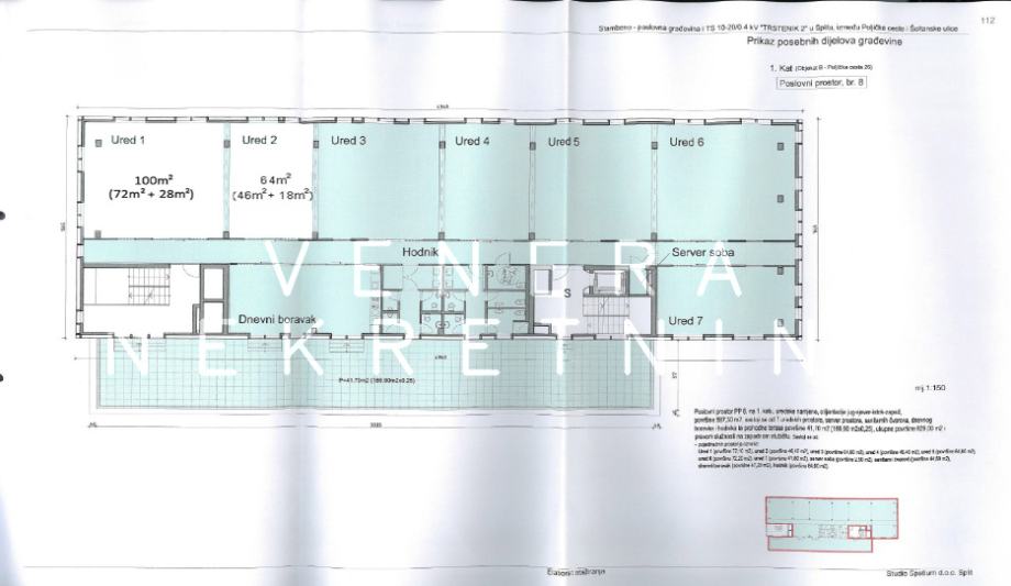 I kat, ured 1: 99,60 m2 = 72,10 m2 + 27,50 m2 -3.500,00 EUR (35,14 EUR/m2) + PDV (dostupno odmah)