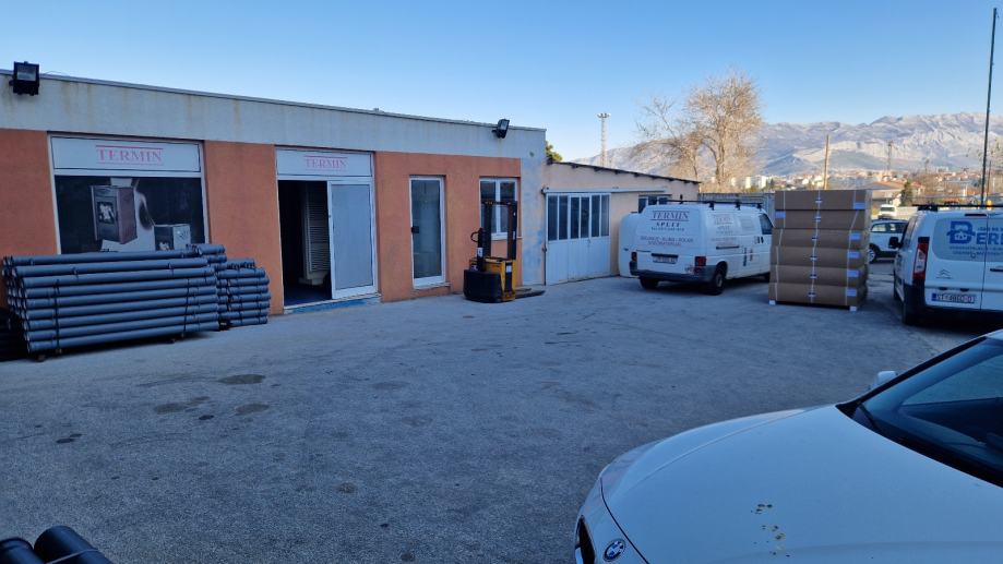 Prostor se satoji od 878m2 od kojih 250m2 poslovnog i 250m2 skladisnog djela te 378m2 parkirnog zatvorenog( ogradenog ) dijela