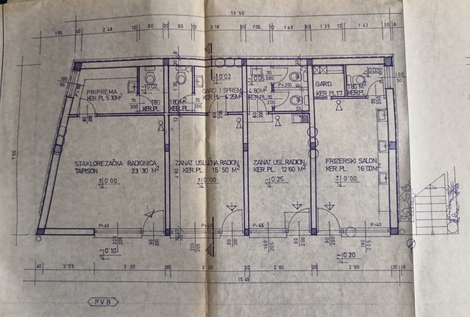 Površina poslovnog prostora oko 110 m2 neto korisne površine uključujući nenatkrivenu terasu, visine stropa 2,45 m.