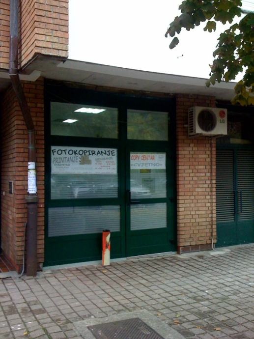 Mali poslovni prostor, potpuno adaptiran 2005, klimatiziran, prikladan za trgovačku ili uslužnu djelatnost, potpuno opremljen za obavljanje fotokopirne djelatnosti(uhodani posao). Atraktivna lokacija, nasuprot Studentskom domu Cvjetno naselje!