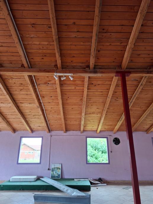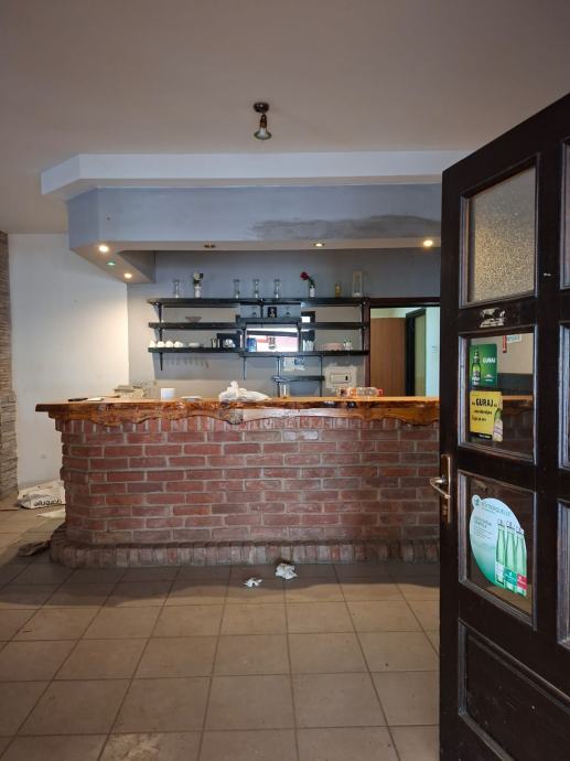 Šank, garderoba i sanitarni čvor izvedeni. Sa sanitarnim čvorom (muški i ženski wc) ukupna neto površina je 202,79 m2, od čega sala 130,29 m2, drvarnica 53,05 m2 i terasa 21,48 m2. Potrebna je adaptacija, prostor se ne koristi već dulje vrijeme.