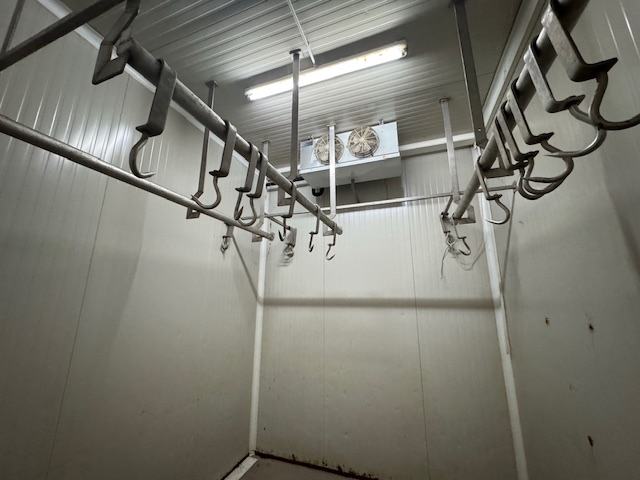Prodaje se poslovni prostor - pogon za preradu mesa i proizvodnju suhomesnatih proizvoda, projektiran i izveden po HACCP standardima. Nalazi se u Trnjanskim Kutima, 13 km istočno od Slavonskog Broda. Nekretnina je izgrađena na građevinskoj čestici površine 1800 m2, sa širinom fronte 22 m , na koju se česticu u produžetku naslanja slijedeća, površine 3250 m2, sa istom širinom. Nekretnina je izgrađena 2005. godine. Tlocrtne površine cca 250 m2 u prizemlju i dva prostora u potkrovlju površine cca 180 m2. Sastoji se od istovarne rampe, skladišta za začine, rashladne komore za polovice, solionice, minus komore, rasjekaone mesa, prostorije za toplinsku obradu mesa, predprostora za izjednačavanje temperature proizvoda, komore za predzrenje i dimljenje, komora za zrenje, tri komore za dimljenje, pakirnice, skladišta polutrajne robe, ureda, sanitarnih čvorova i svlačionice u prizemlju, te termoizolirano skladište gotovih proizvoda, dodatno skladište i terasa u potkrovlju. Nekretnina zidana blokom te iznutra izolirana zidnim panelima. Zakupljena struja snage 40 kW, Moguć priključak na vodovod, Plin za toplinsku obradu pripremljen uz korištenje velikog spremnika plina. Izvedena sabirna jama. Prostor je u dobrom stanju, ali zbog dužeg ne korištenja potrebna djelomična adaptacija. Zemljište je ograđeno, širok kolni ulaz, stražnji dio dvorišta u cjelosti izbetoniran i u funkciji manipulativnog prostora.