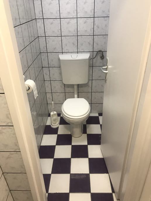 Sastoji se od otvorenog prostora (lokala), djelomično odvojenog malog garderobno-skladišnog prostora i sanitarnog čvora. Prostor je klimatiziran. Cijena zakupa 600€ VPC + režije.