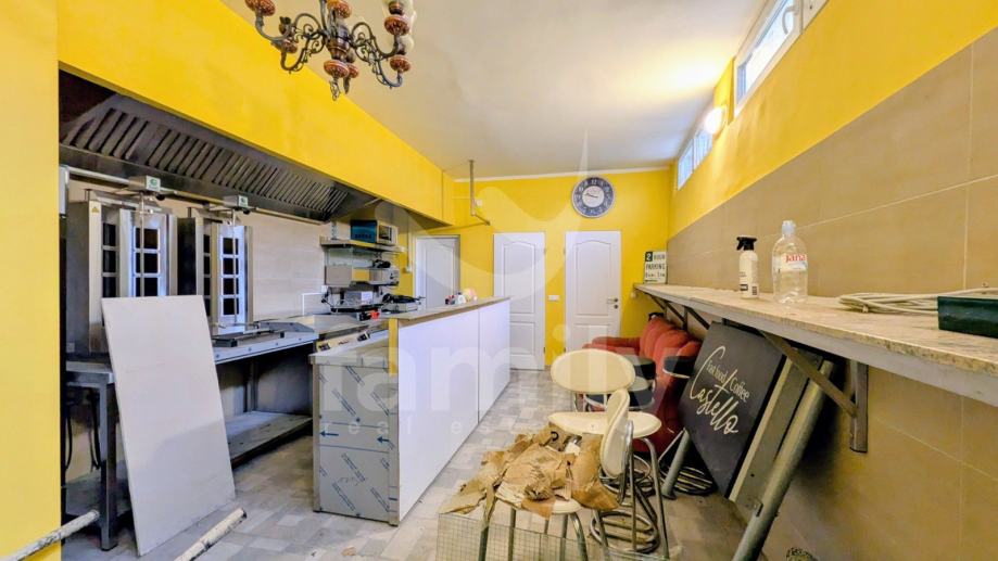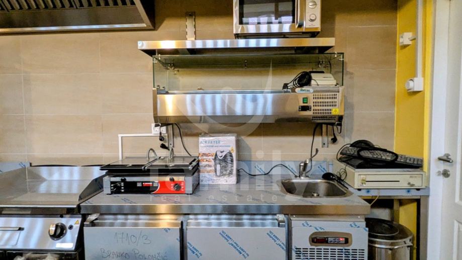 U samom centru Pule točnije u staroj jezgri nedaleko od pulskog Kaštela nalazi se ovaj poslovni prostor ugostiteljske namjene uređen za poslovanje caffe bara i brze hrane površine 90 m2. Prostor posjeduje ulaz sa ceste gdje je prizemlje tlocrtne površine 45 m2 sa terasom na prvome katu iste površine. Unutar prizemlja smjestio se kuhinjski dio, ostava, dva toaleta za goste i kupaonica za zaposlene. Posjeduje električnu struju, vodu te priključak na gradski plin u slučaju potrebe, a opremljen je PVC stolarijom, novom kuhinjom, šankom na vanjskoj terasi. Poslovni prostor se nalazi na zasebnoj katastarskoj čestici, upisan kao poslovna zgrada, s time da trenutno NE posjeduje uporabnu dozvolu te je pripremanje dokumentacije i ishodovanje u tijeku čiji je završetak moguć od strane sadašnjeg vlasnika uz nadoplatu cijene.