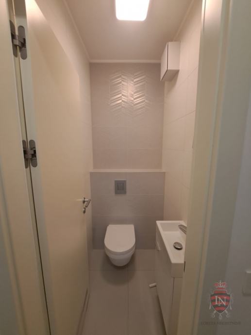 Ima potpuno opremljenu čajnu kuhinju (hladnjak, perilica suđa, indukcijska ploča, napa, pećnica) i dva sanitarna čvora.