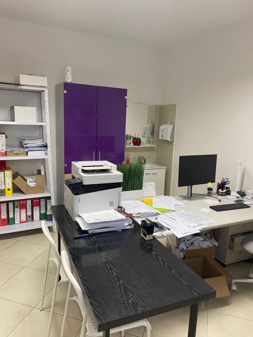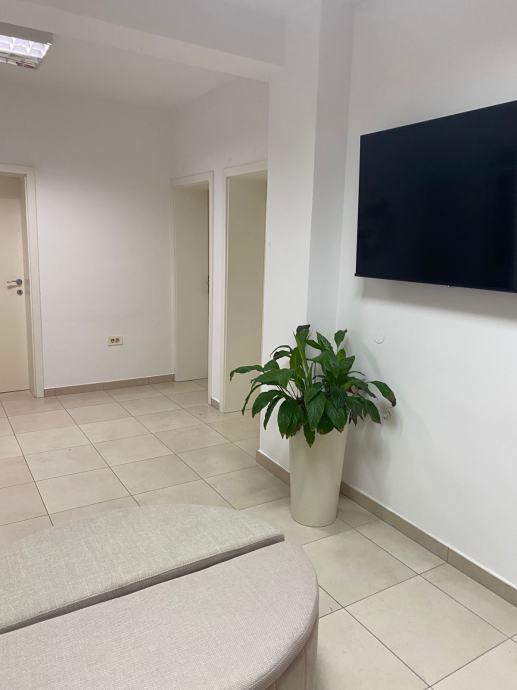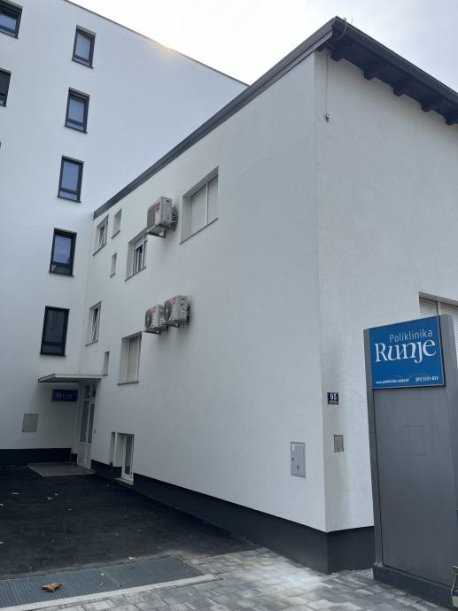 Iznajmljuje se cijela etaža, neto površine 77,29 m2, djelomično namješteno, u zgradi bivše Poliklinike Runje, sada u funkciji uredskog prostora, a prethodno u funkciji specijalističke ordinacije, na vrlo frekventnoj pješačkoj i prometnoj lokaciji (ugao Zagrebačke ulice i ulice A.G. Matoša). Zgrada ima lift koji veličinom i funkcijom omogućava kretanje invalidnim osobama u svim etažama. Veličina prostorija, sanitarni čvorovi za osoblje i korisnike, topla voda u svim prostorijama, rasvjeta i podovi pogodni za obavljanje raznih djelatnosti.