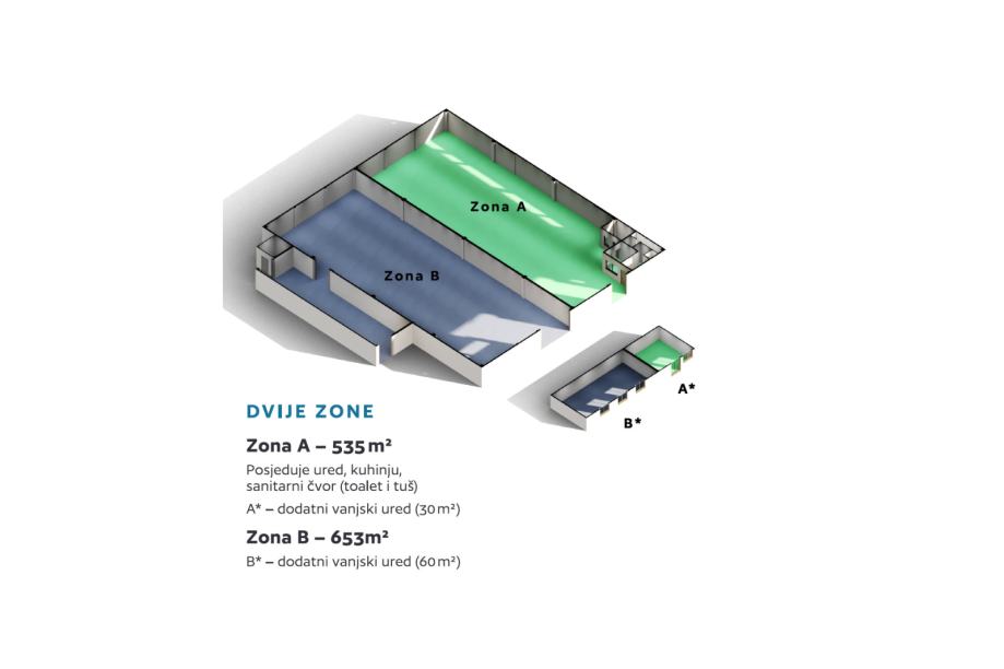 • Proizvodno-skladišna hala odmah spremna za upotrebu: minimalne mjesečne komunalne naknade.