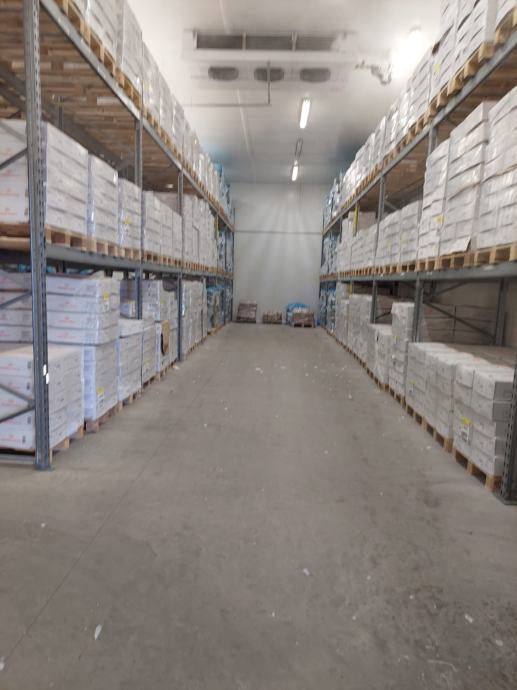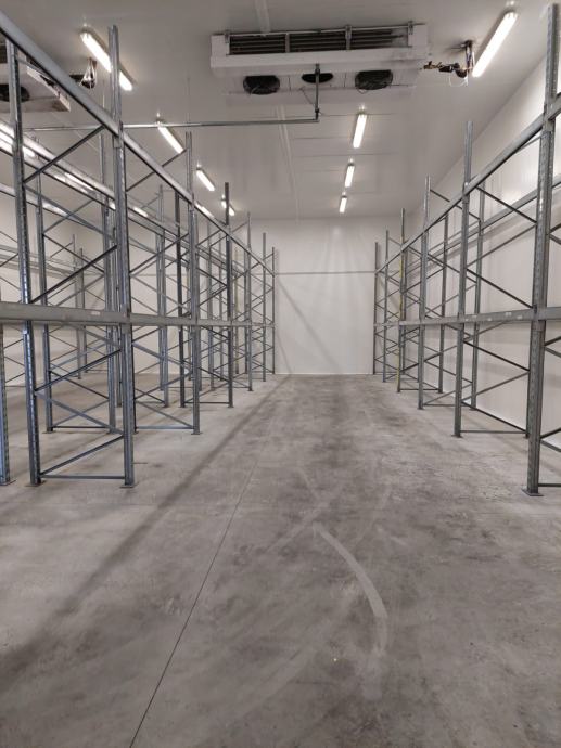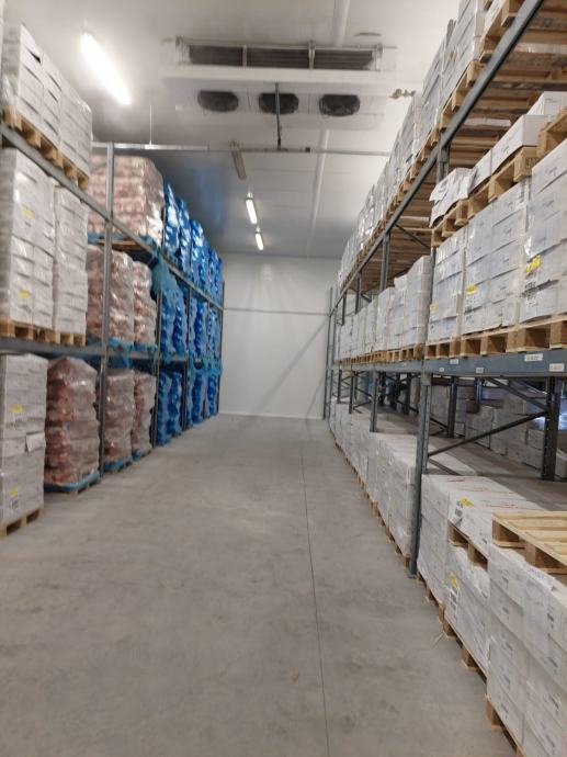2. Hladnjače ukupne površine 567,31m2 koja se sastoji od dvije komore svaka po 250,56m2 i pretkomore od 66,18m2, kapaciteta najmanje 486 paletnih mjesta na regalima, odnosno 400 tona smrznute sirovine temperaturnog režima -18 do -20°C,opremljena u skladu s važećim propisima za skladištenje (mesa, mesnih prerađevina, kao i svih prehrambenih proizvoda koji se mogu skladištiti u dubokom smrzavanju).